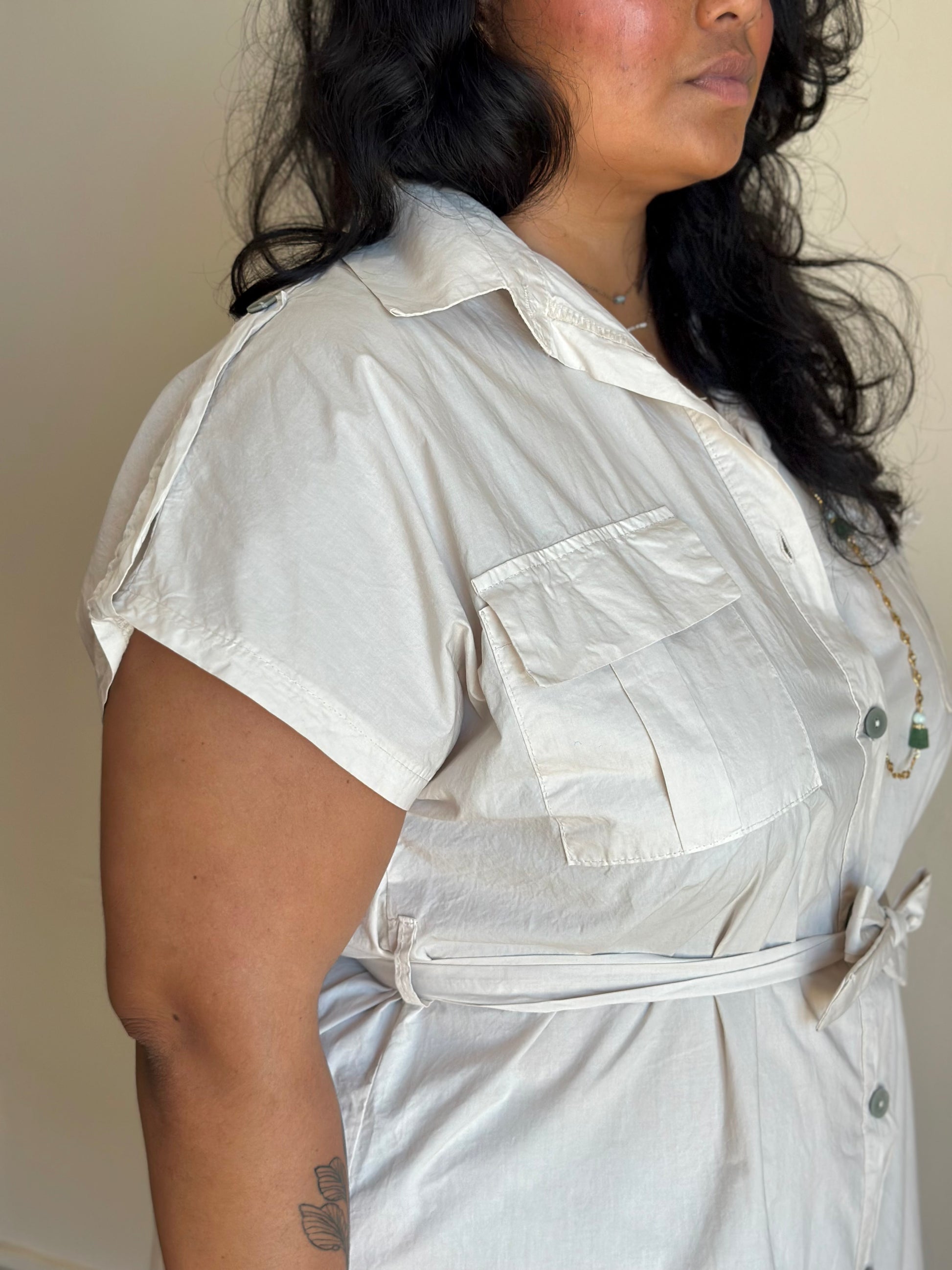 Le mix parfait entre confort et style. Cette robe chemise mi-longue présente deux poches plaquées au niveau de la poitrine et une ceinture à nouer qui souligne joliment la taille. Boutonnage sur toute la longueur, manches courtes, et un tissu 100% coton pour un tombé naturel. À porter avec des baskets en journée ou des bottines pour un look plus habillé.